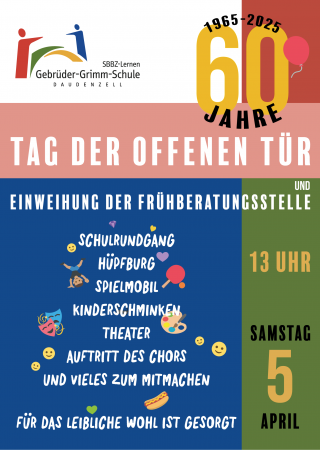 Unsere Schule wird 60 Jahre alt. Sie wurde in den 60er Jahren gebaut. Unsere Schule war damals keine Sonderschule, sondern eine Volkschule. Unsere Schule war auch nur halb so groß. Deswegen wurde im Jahr 1962 ein Neubau fertig gestellt. Unsere Schule hat dann mehr Platz für Schüler und auch für Lehrer und Sekretärinnen. Unsere Schule wurde im Jahr 1965/1966 von einer Volkschule zu einer Sonderschule umbenannt. Unsere Schule heißt Gebrüder-Grimm-Schule, weil damals Lehrer den Namen erfunden haben. Die Personen, die am längsten an der Schule arbeiten sind Frau Scheithe und Frau Neureither. Frau Scheithe ist unsere Schulleitung und arbeitet seit 2009 in der Schule. Frau Neureither ist unsere Hausmeisterin, sie macht unsere Schule sauber. Sie macht auch leckeres Essen für Schüler/Schülerinnen. Sie arbeitet seit 1991 in der Schule.