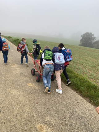 Das Apfelprojekt ging Äpfel sammeln und konnte diese am Folgetag – dank der freundlichen Unterstützung des Landhandel Barth Aglasterhausen – diese vor Ort gegen Apfelsaft eintauschen und sogar noch frischen Saft probieren. Herzlichen Dank dafür!