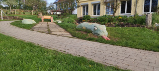 Das KooBo-Projekt hat am 15.3.2024 begonnen und ging bis zum 18.3.2024. Wir haben als erstes besprochen, was wir in der Zeit vorhaben. Letztes Jahr wurde begonnen den Schulhof zu verschönern und eine große Schlange gebaut. Wir wollten jetzt passend dazu Babyschlangen in einem Nest herstellen, eine Sitzbank und Hüpfsteine mit Tier abdrücken sollten ebenfalls dazu. Wir haben die Steine selbst gemeißelt. Ich habe ganze 3 Tage gebraucht, um in einen Stein etwas rein zu meißeln. Die Sitzbank haben wir auch selbst handgefertigt. Und die Babyschlangen und die Schlangeneier haben wir mit Modelliermasse gebaut. Es hat durchgehend nur geregnet. Wir standen jeden einzelnen Tag im Regen und waren echt durchweicht.